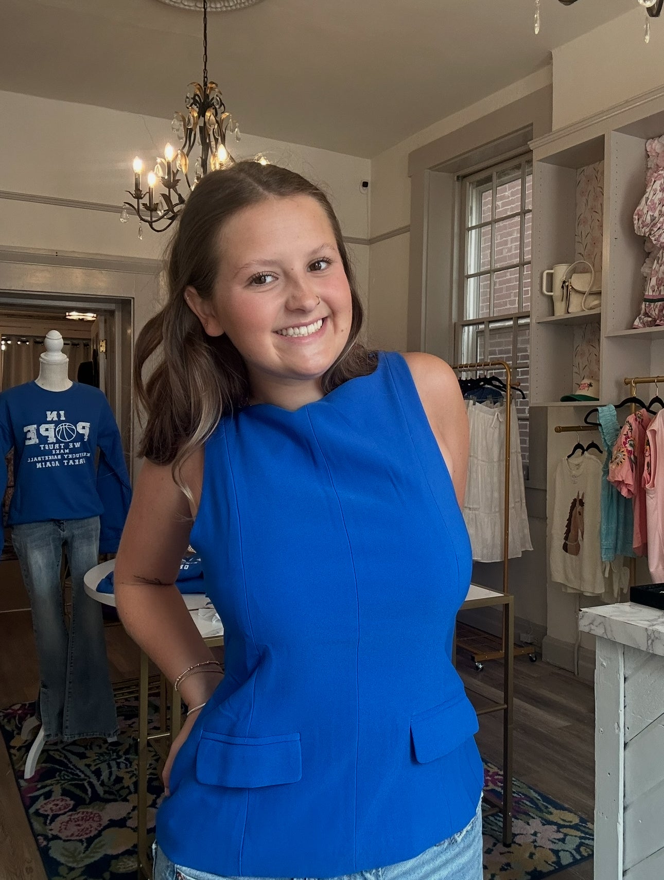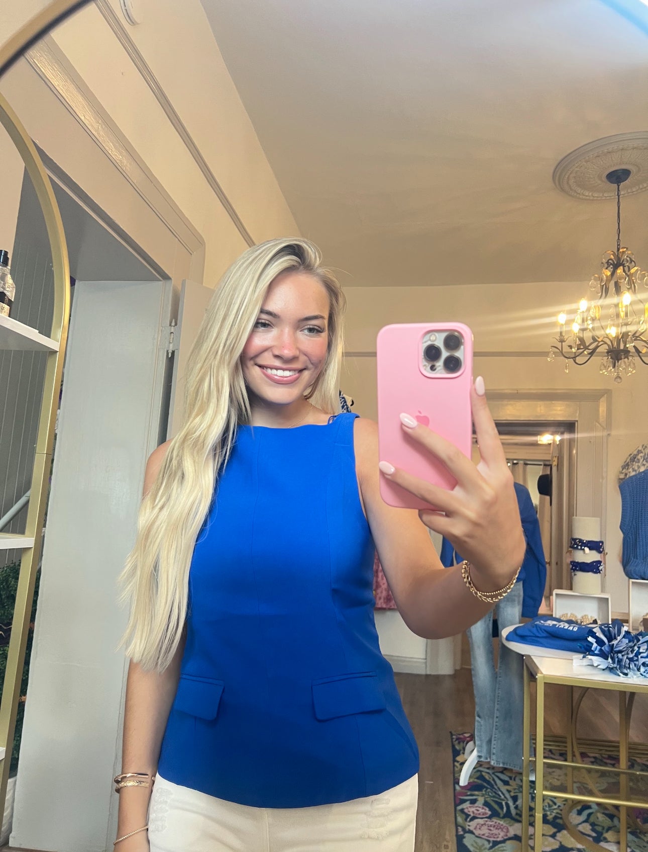 Royal blue boat neck tank top. Perfect for work, date night or game day!